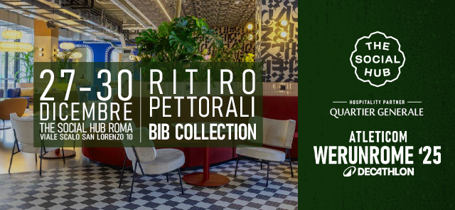 Il ritiro dei pettorali e kit gara per le società si svolgerà dal 29 al 30 Dicembre presso The Social Hub Roma, che si trova in viale dello Scalo S. Lorenzo 10.